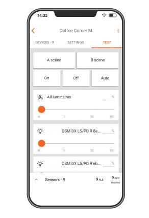 If you want to change settings at the end of the installation, you can use the web and mobile app to adjust the parameters of the individual zones as required, e.g. daylight control, dimming levels or delay periods. A new zone assignment is also possible.